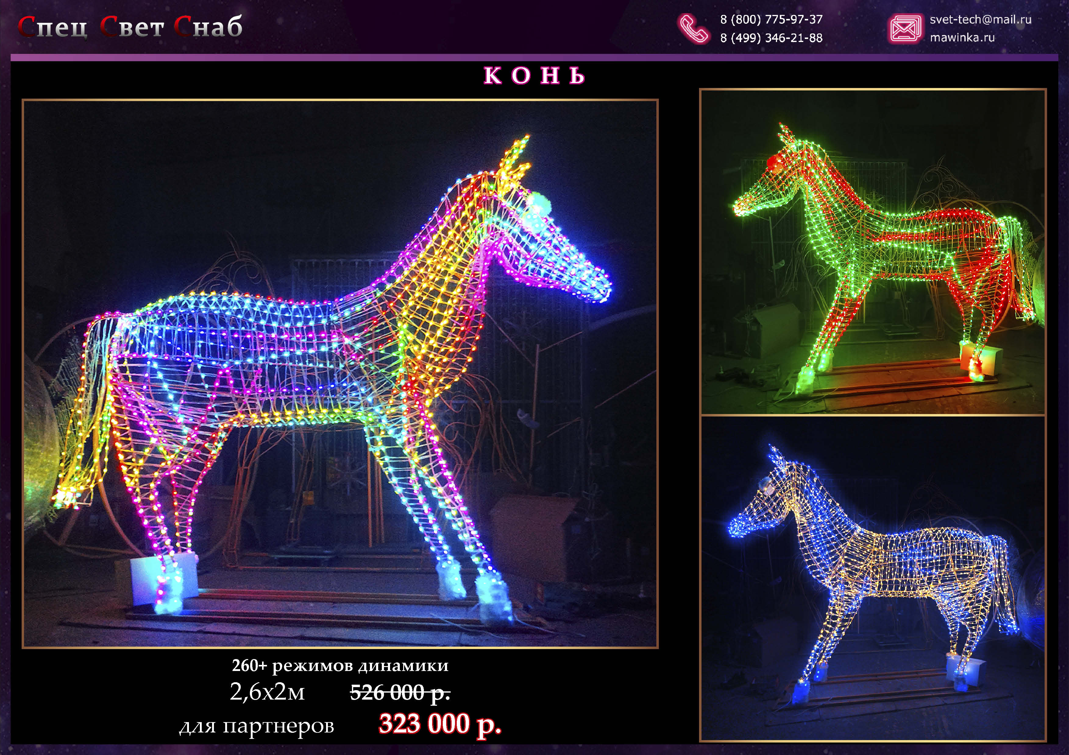 Тип световой фигуры Световая новогодняя фигура, Конь